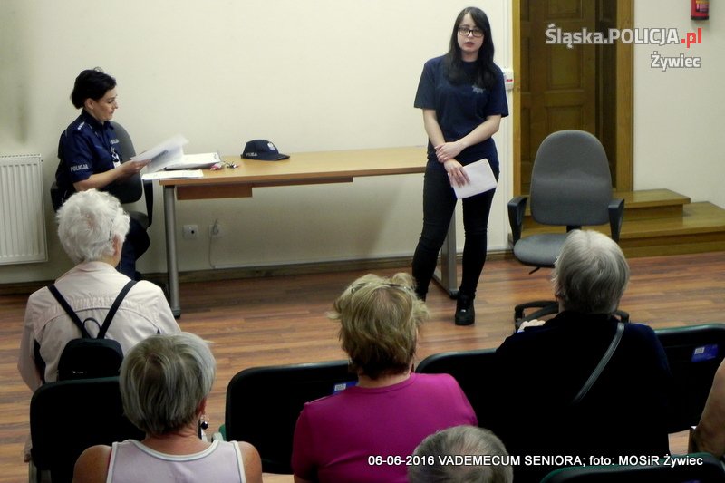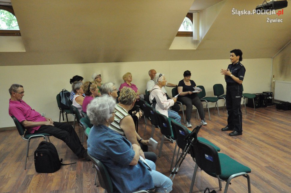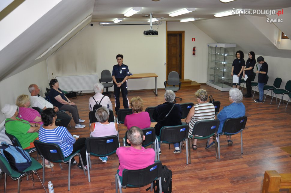 Żywieccy policjanci, w ramach prowadzonego przez Miejski Ośrodek Sportu i Rekreacji w Żywcu projektu "Senior/ka", po raz kolejny spotkali się z seniorami. Tym razem tematem spotkania były oszustwa. W czasie przedsięwzięcia uczniowie z klasy policyjnej Zespołu Szkół Mechaniczno-Elektrycznych w Żywcu zaprezentowali występ artystyczny. Wszystko po to, aby uczulić i ostrzec osoby starsze przed oszustami wyłudzającymi pieniądze tzw. metodą na wnuczka.