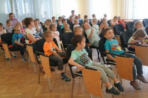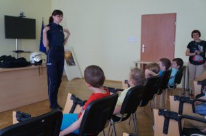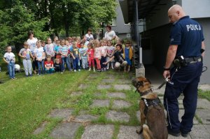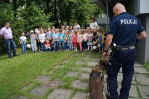 Dzisiaj żywieckich policjantów odwiedziły przedszkolaki z Juszczyny. W czasie spotkania mundurowi w łatwy i przystępny sposób przekazali maluchom wiedzę na temat tego, jak bezpiecznie poruszać się po drodze. Wszyscy wspólnie obejrzeli też film edukacyjny o bezpieczeństwie w ruchu drogowym. Po jego prezentacji milusińscy złożyli uroczystą obietnicę, że będą przestrzegać zasad ruchu drogowego. Następnie, każdy maluch mógł poczuć się jak prawdziwy policjant przymierzając policyjne wyposażenie, którym stróże prawa posługują się w codziennej służbie. Policjanci przybliżyli też dzieciom specyfikę swojej pracy. Na koniec maluchy zapoznały się z policyjnym radiowozem. Każdy mógł zasiąść za jego kierownicą. Jednak największe emocje wzbudził pokaz wyszkolenia policyjnego psa Iwana. Wycieczka ta z pewnością na długo pozostanie w pamięci milusińskich.