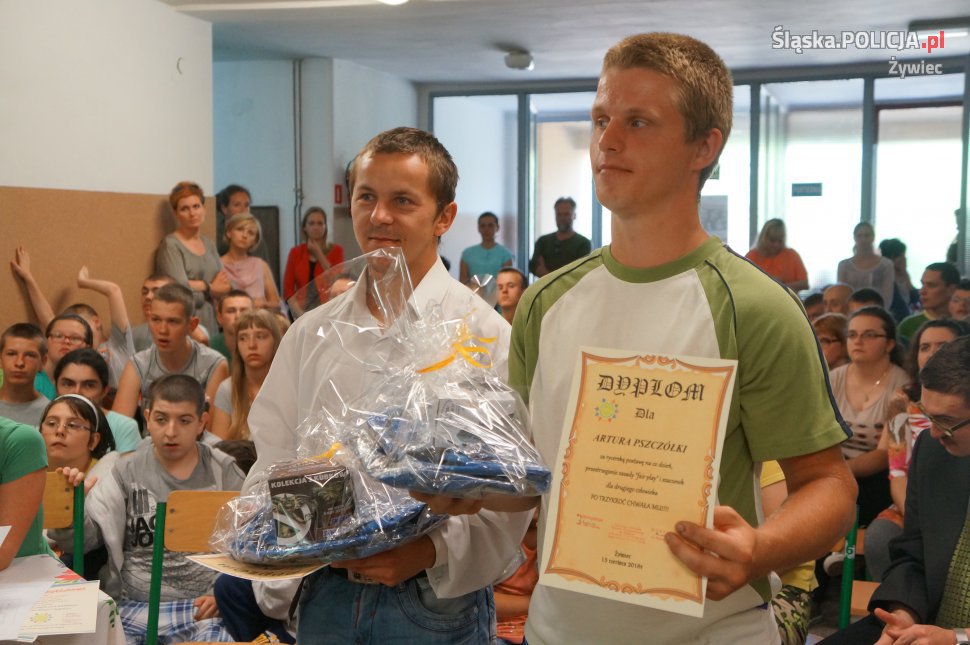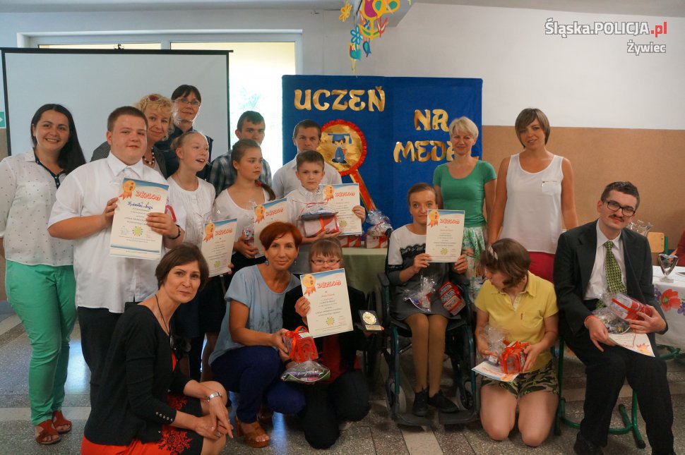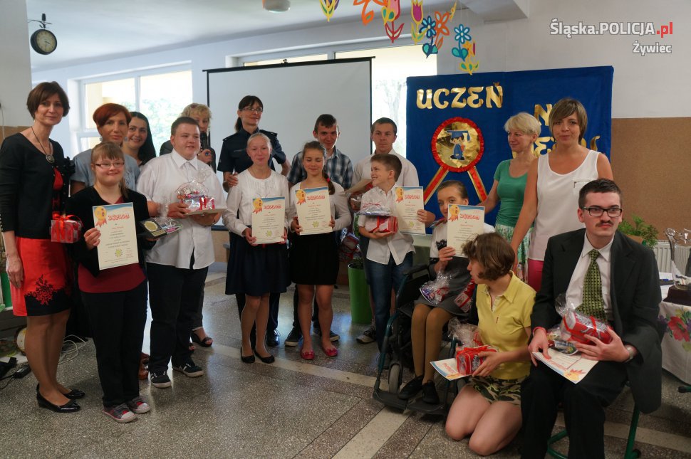 Dzisiaj w Specjalnym Ośrodku Szkolno – Wychowawczym w Żywcu odbył się konkurs „Uczeń na medal”. Tegoroczna edycja odbyła się pod hasłem "Szkoła otwarta dla każdego ucznia małego i dużego". Organizatorami imprezy była dyrekcja szkoły, grono pedagogiczne ośrodka oraz Stowarzyszenie "Chce się żyć". Na imprezie nie zabrakło żywieckich policjantów, którym przypadł zaszczyt zasiadać w jury. W szranki stanęło 12 uczestników, którzy losowali zestaw trzech pytań. Zakres tematyczny konkursu dotyczył wiedzy o ośrodku, jego strukturze, organizowanych imprezach kulturalnych, wycieczkach, a także licznych gościach odwiedzających ośrodek. Po zaciętej rywalizacji jury ogłosiło wyniki. Tytuł „Ucznia na medal” zdobyło egzekwo dwoje uczniów, którzy bezbłędnie odpowiedzieli na wylosowane pytania. Wszyscy uczestnicy konkursu otrzymali nagrody.