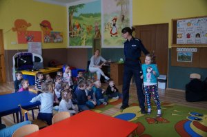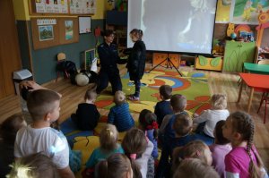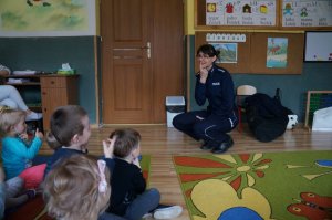 Policjanci z żywieckiej komendy odwiedzili przedszkolaków z Krzyżowej. Stróże prawa w łatwy i przystępny sposób tłumaczyli milusińskim, na co należy zwrócić uwagę podczas kontaktu z obcymi psami. Policjanci, z pomocą przedszkolaków-ochotników, pokazali postawę żółwia, która uchroni dzieci w razie kontaktu z agresywnym zwierzęciem. Niewątpliwą atrakcją spotkania była obecność policyjnego czworonoga – Larego. Jego przewodnik, st.asp. Grzegorz Wojtusiak, opowiedział o wspólnej służbie oraz przestrzegał przed zachowaniami, które mogą rozzłościć czworonoga i sprowokować go do ataku. Na zakończenie policjanci przypomnieli przedszkolakom o podstawowych zasadach bezpieczeństwa w ruchu drogowym. Wszyscy wspólnie obejrzeli film profilaktyczny, a po jego prezentacji przedszkolaki w obecności stróżów prawa złożyli uroczystą obietnicę, że będą przestrzegać zasad ruchu drogowego. W nagrodę za dużą wiedzę przedszkolaków dotyczącą bezpieczeństwa policjanci wręczyli im elementy odblaskowe i podkreślali, jak ważne dla własnego bezpieczeństwa jest ich noszenie.