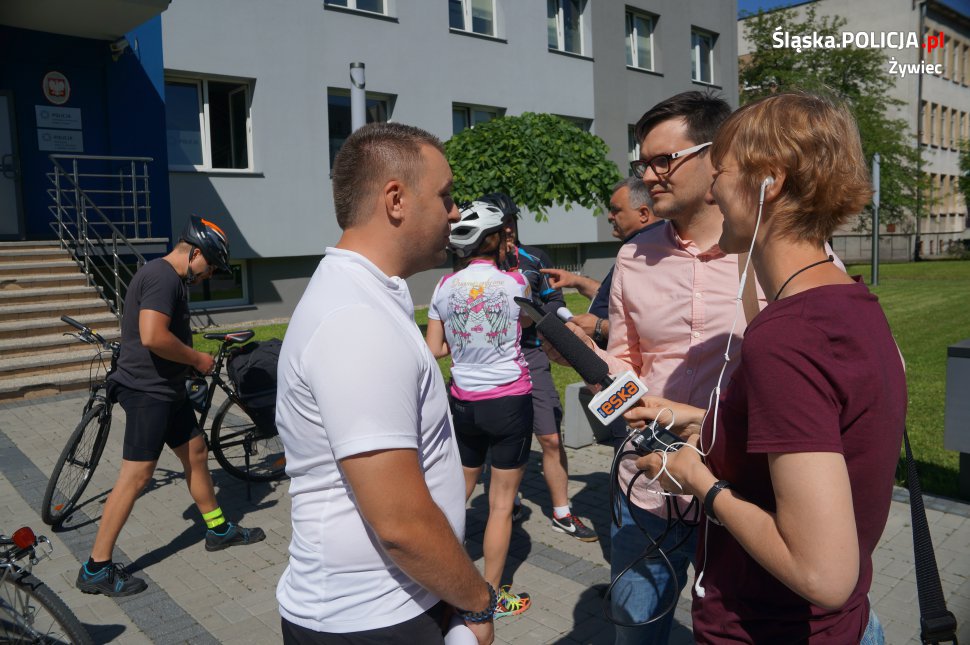 Dzisiaj punktualnie o 7.00 spod Komisariatu Policji w Rajczy ruszył drugi etap rowerowej wyprawy charytatywnej, którą zainicjowali policjanci ze strumieńskiego komisariatu. W liczącej ponad 52 kilometry trasie, wiodącej przez powiat żywiecki, towarzyszyli im policjanci z Żywca, na czele ze swoim szefem podinsp. Michałem Łukasikiem. Dodatkowo, nad bezpiecznym przejazdem rowerzystów czuwali policjanci z żywieckiej drogówki. Policjanci odwiedzili kolejno Komisariat Policji w Rajczy, Węgierskiej Górce, Jeleśni, Gilowicach oraz Łodygowicach. Pod Komendą Powiatową Policji w Żywcu na rowerową sztafetę czekały lokalne media. Głównym celem wyprawy jest zbiórka pieniędzy na operację i leczenie 16- letniej Wiktorii Gruszki, córki naszego kolegi - dzielnicowego Grzegorza Kacana z KP w Pyskowicach. Na ten cel żywieccy policjanci zebrali ponad 1200 zł. Zbiórka się jeszcze jednak nie skończyła i wciąż można wesprzeć chorą nastolatkę.
