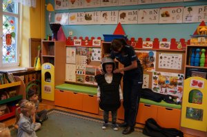 Policjanci z żywieckiej komendy odwiedzili przedszkolaków z przedszkola Sióstr Serafitek w Żywcu. W czasie spotkania mundurowi w formie zabawy uczyli maluchy, jak bezpiecznie korzystać z dróg oraz jak wezwać pomoc, gdy ktoś jej potrzebuje. Na zakończenie każdy maluch otrzymał od policjantów element odblaskowy i dowiedział się dlaczego tak ważne dla własnego bezpieczeństwa jest ich noszenie.