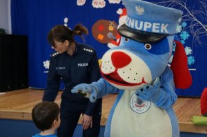 Dzisiaj policjanci z żywieckiej komendy złożyli wizytę przedszkolakom z przedszkola nr 1 w Żywcu. W czasie spotkania stróże prawa w łatwy i przystępny sposób uczyli dzieci, jak należy się zachowywać na drodze, aby być bezpiecznym. Przekazana wiedza teoretyczna była sprawdzana w praktyce, poprzez ćwiczenia i pokazy, które policjanci wykonywali wspólnie z uczniami. Dzieci wykazały się ogromną wiedzą i bezbłędnie odpowiadały na zadawane przez policjantów pytania. W profilaktycznych działaniach stróżom prawa pomagał pluszowy przyjaciel dzieci - „Sznupek”, który tłumaczył dzieciom dlaczego tak ważne jest aby każdy z nas dbał o bezpieczeństwo. Część spotkania policjanci poświęcili również na przybliżenie dzieciom zawodu policjanta. Do tego posłużył im sprzęt, który wykorzystują w codziennej służbie. Każdy maluch mógł obejrzeć i przymierzyć policyjne wyposażenie. Zadowolenie i uśmiechy na twarzach milusińskich były dla policjantów największą nagrodą.