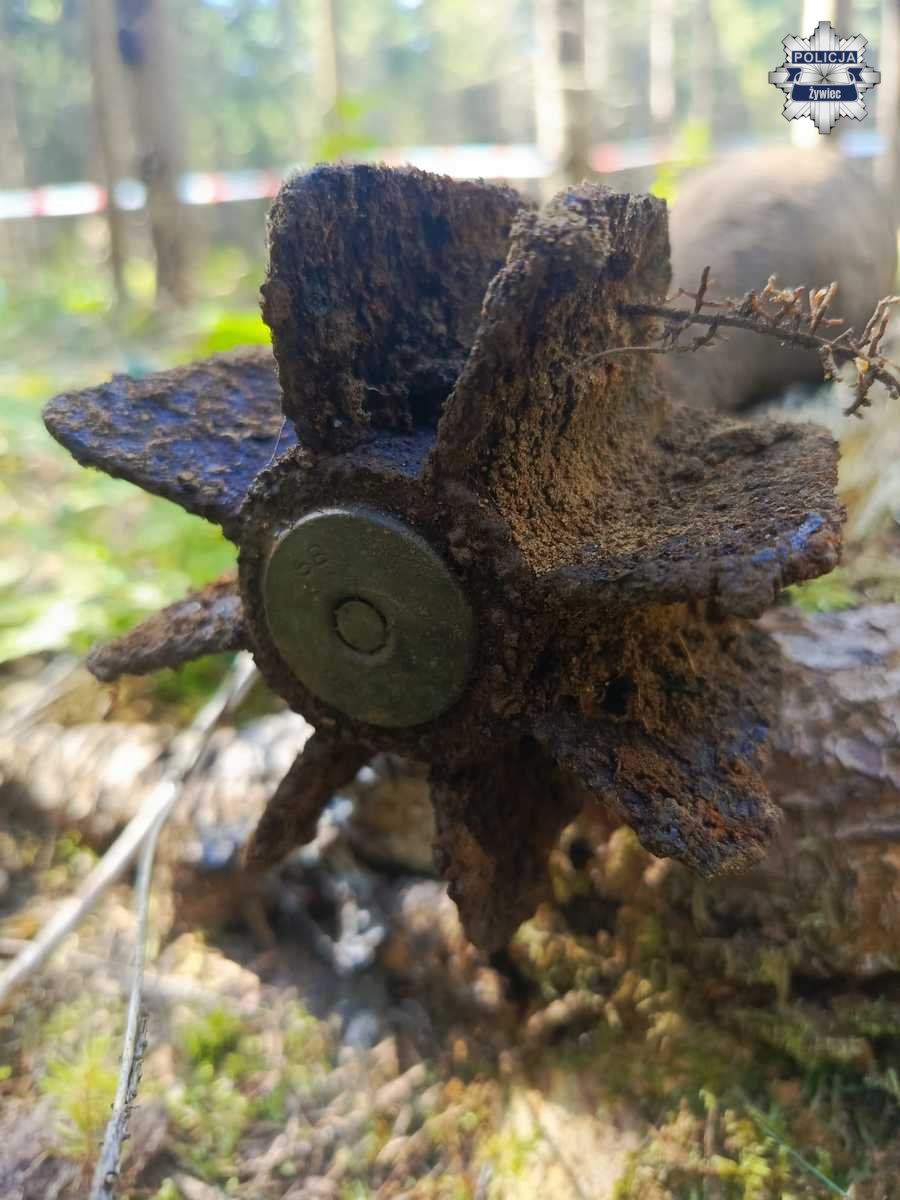 W poniedziałek dyżurny żywieckiej komendy policji otrzymał informację, że w miejscowości Sopotnia Mała , znajduje się prawdopodobnie pocisk moździerzowy Na miejsce natychmiast pojechali policjanci zajmujący się rozpoznaniem minersko-pirotechnicznym. Znalezisko zidentyfikowali jako pocisk moździerzowy pochodzący najprawdopodobniej z okresu II Wojny Światowej. Po dokonaniu dalszej penetracji ujawniono kolejne pociski.