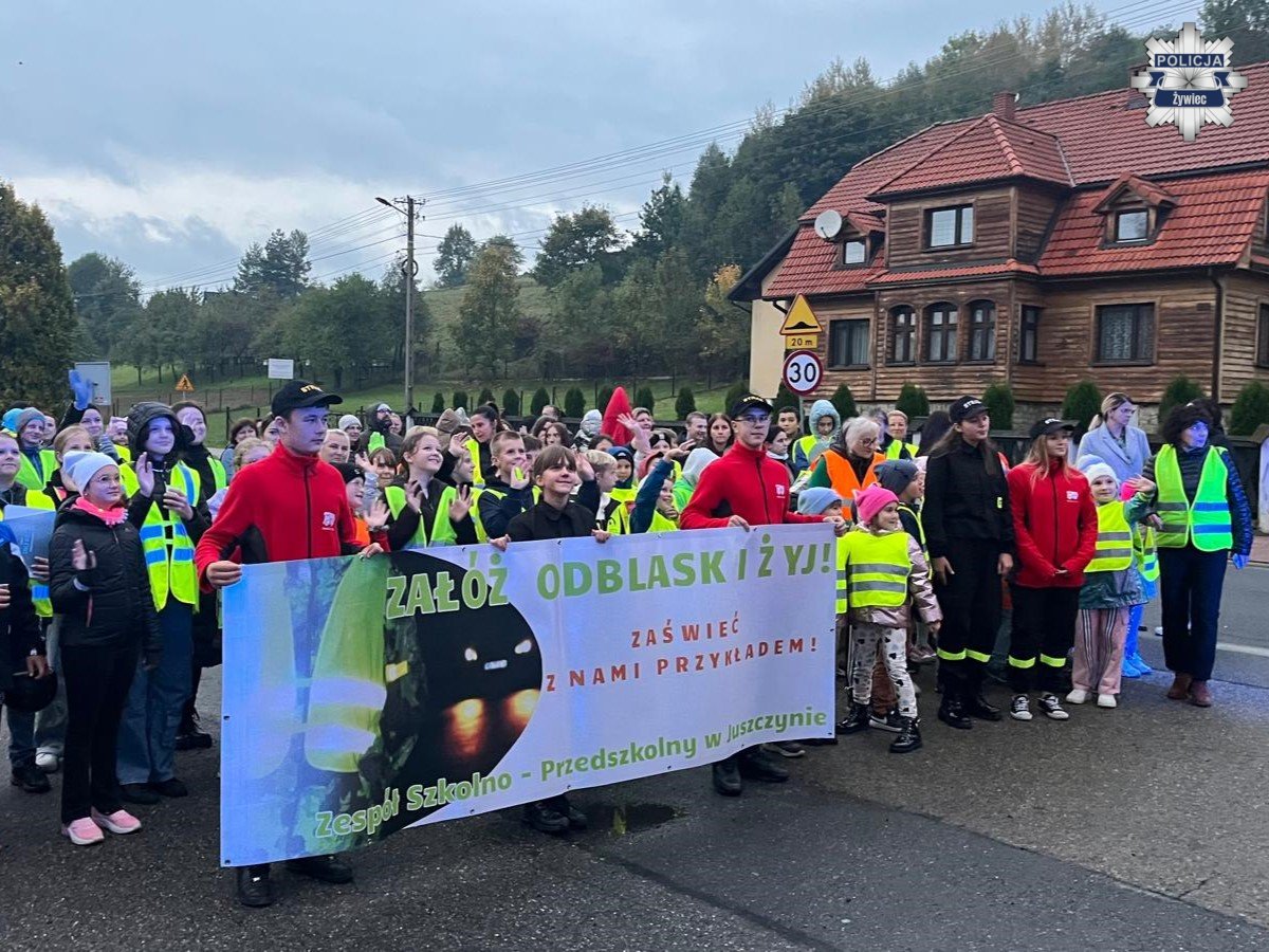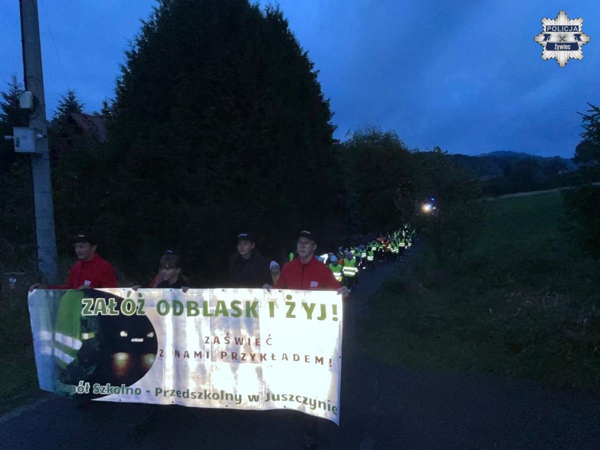 Na znak rozpoczęcia działań uczniowie wraz z nauczycielami przygotowali specjalny marsz odblaskowy ulicami miejscowości. Cała społeczność szkolna założyła kamizelki i opaski odblaskowe, które sprawiły, że dzieci i dorośli dosłownie „świecili przykładem”.