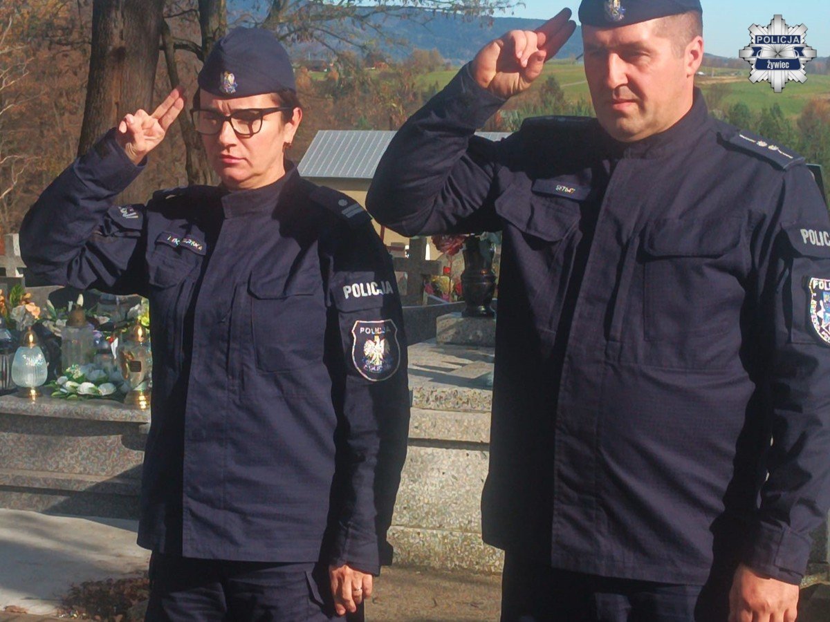 Dzień Wszystkich Świętych jest okazją do uczczenia pamięci tych, którzy stracili życie w walce o suwerenność i niepodległość Ojczyzny. Dlatego Komendant Powiatowa Policji w Żywcu podinsp. dr Izabela Boczarska, wspólnie z przedstawicielem Zarządu Terenowego NSZZ Policjantów aspirantem sztabowym Grzegorzem Krzemień oraz aspirantem Adamem Śleziak zapaliła znicz i złożyła wiązankę pod tablicą upamiętniającą przodownika Józefa Szczepanika, Komendanta Posterunku Policji Państwowej w Zabłociu, który zginął śmiercią tragiczną w dniu 1 września 1939 roku. Następnie symboliczny znicz zapłonął również pod Pomnikiem Pamięci Policjantów II RP z ziemi żywieckiej, którzy oddali swe życie w walce za wolność i wierność Polsce. Uczcili również pamięć zmarłych policjantów służących w Żywieckiej Komendzie.