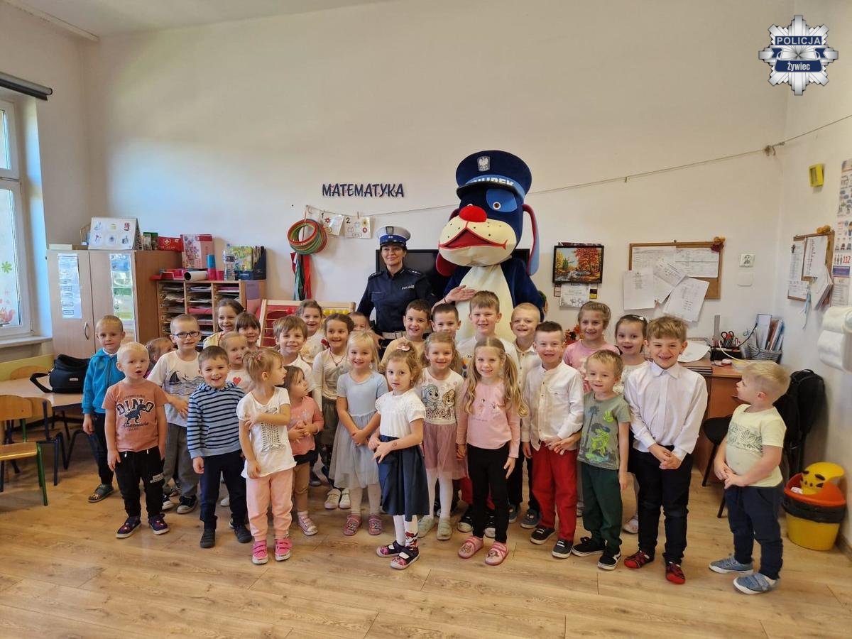 Policjanci z żywieckiej komendy praktycznie każdego dnia odwiedzają przedszkolaków i pierwszoklasistów czy to w Żywcu, czy też w powiecie. Tym razem zawitali do przedszkola w Koszarawie. W czasie tych spotkań stróże prawa w łatwy i przystępny sposób uczą dzieci, jak należy zachowywać się na drodze, aby być bezpiecznym. Policjanci przekazaną wiedzę teoretyczną każdorazowo sprawdzają w praktyce, poprzez ćwiczenia i pokazy, które wykonują wspólnie z dziećmi. Uczniowie zawsze wykazują się ogromną wiedzą i bezbłędnie odpowiadają na zadawane przez policjantów pytania. W profilaktycznych działaniach stróżom prawa pomaga pluszowy przyjaciel dzieci – „Sznupek” oraz jego kolega „Ratuś”, który uczy dzieci, jak należy prawidłowo wezwać pomoc, gdy dzieje się coś złego.