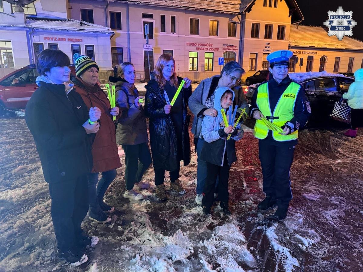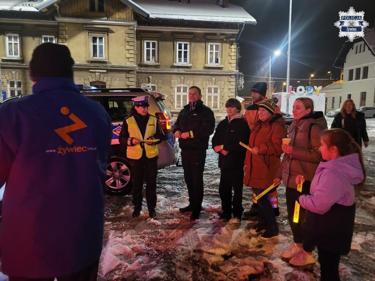 Okres jesienno-zimowy to czas, kiedy zmrok zapada dużo wcześniej - piesi stają sie wtedy mniej widoczni dla kierowców. Niewielki element odblaskowy potrafi diametralnie zwiększyć bezpieczeństwo: pieszy bez odblasku zauważalny jest z odległości około 25-30 metrów, natomiast z odblaskiem - nawet 130-150 metrów. To ponad czterokrotnie większa szansa, że kierowca zauważy pieszego i zdąży zareagować. Wydarzenie odbyło się w kilku lokalizacjach na terenie Żywca - by każdy chętny miał możliwość odebrania odblasku i zabrania kolejnego dla najbliższych.