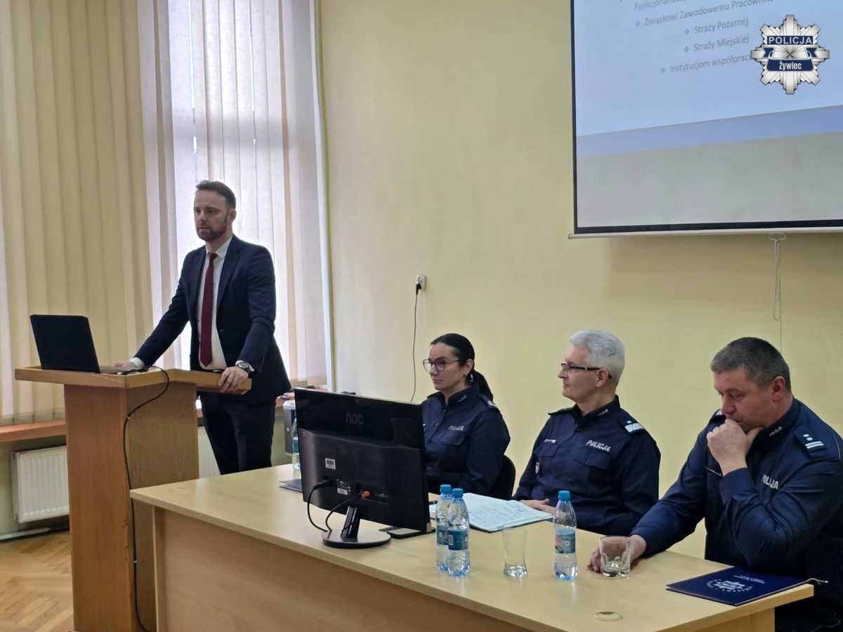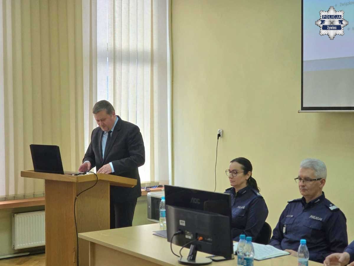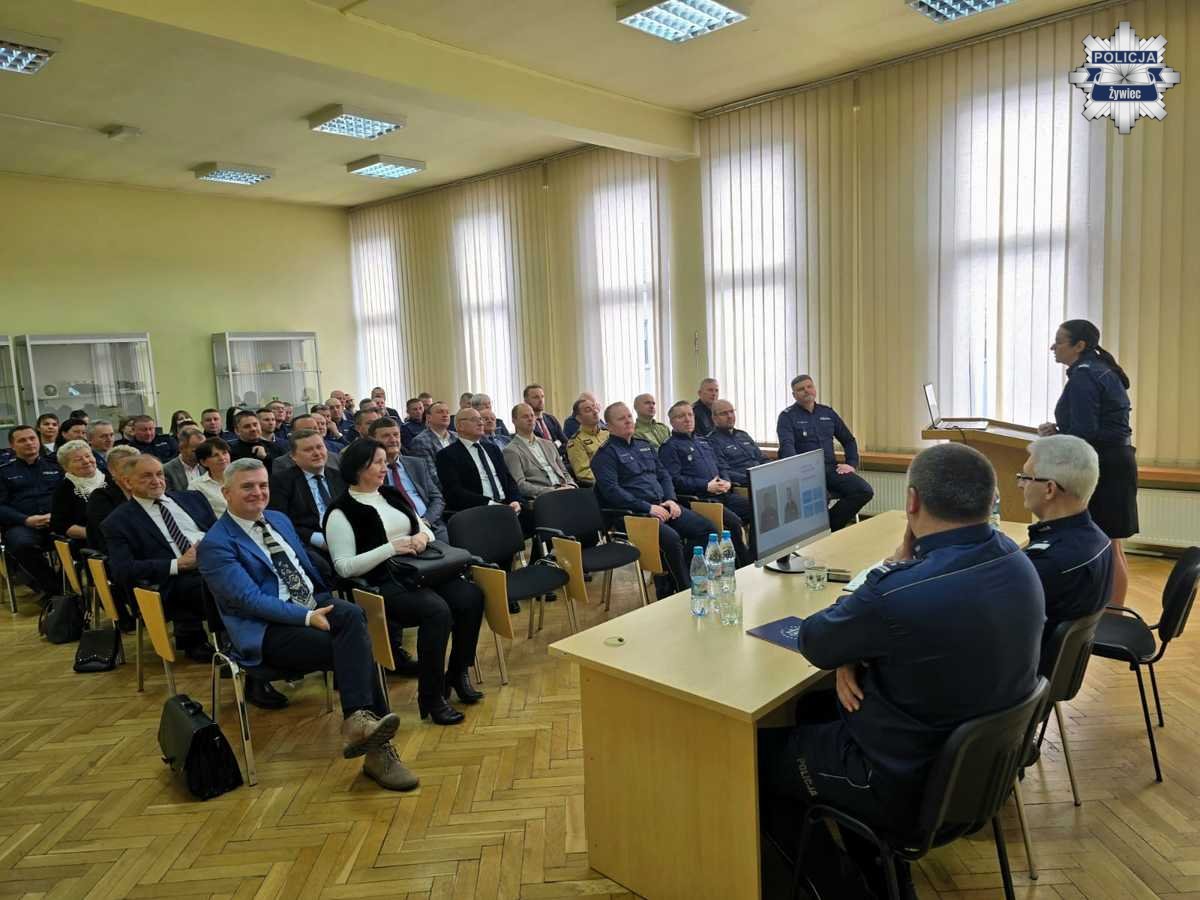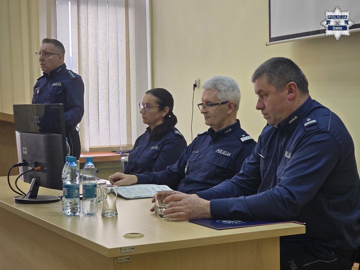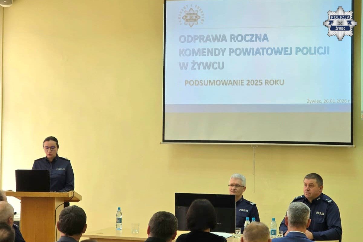 W poniedziałek, 26 stycznia, w Komendzie Powiatowej Policji w Żywcu odbyła się coroczna narada podsumowująca rok 2025. Podczas spotkania przedstawiono stan bezpieczeństwa na terenie powiatu żywieckiego, zaprezentowano osiągnięcia policjantów w minionym roku oraz określono priorytety działań na rok 2026.