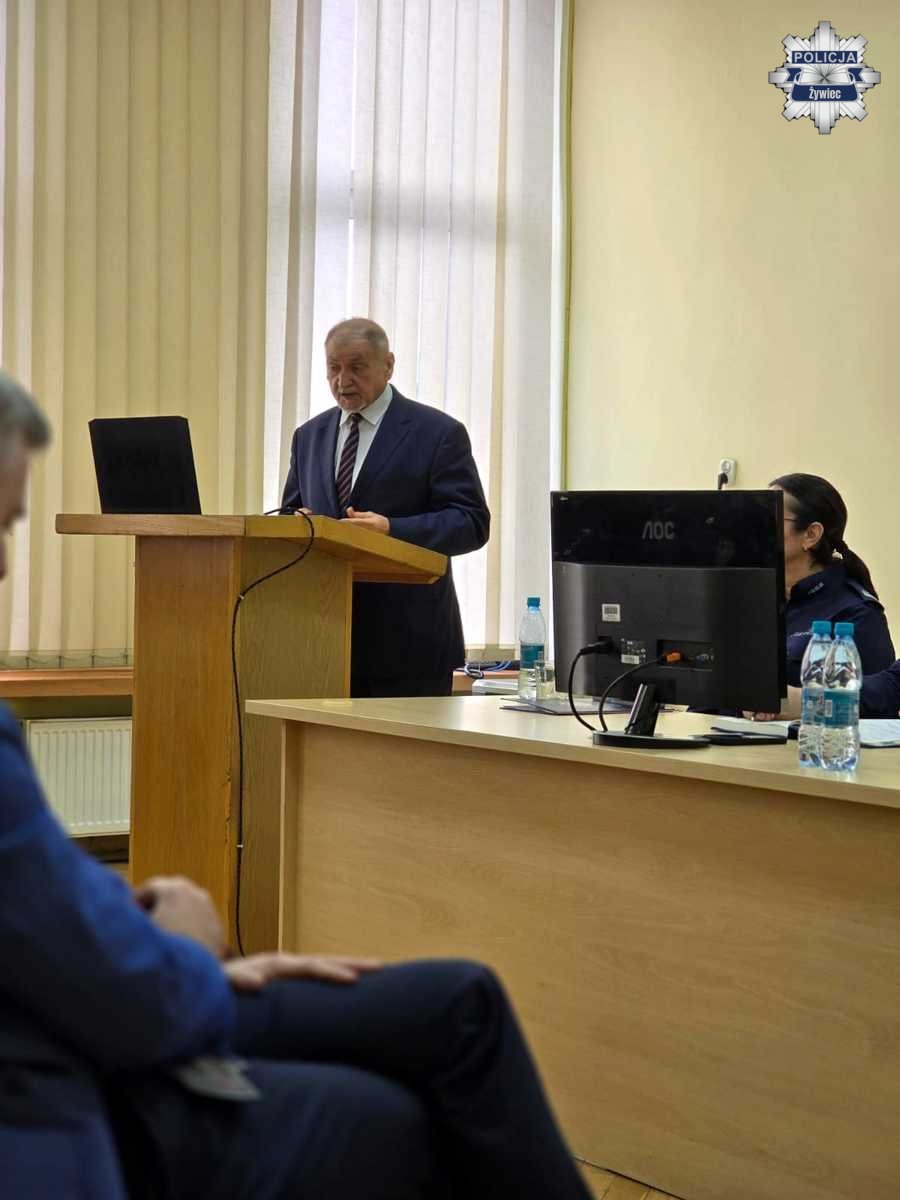Spotkanie rozpoczęła Komendant Powiatowy Policji w Żywcu, podinspektor dr Izabela Boczarska, która powitała zgromadzonych, a następnie podsumowała osiągnięcia i działania w 2025 roku w zakresie kadr, logistyki, jednoosobowych stanowisk (oficer prasowy, kontrola i ochrona informacji niejawnych) oraz wydziałów: kryminalnego i do walki z przestępczością gospodarczą omawiając ich wyniki, przeprowadzone działania oraz najważniejsze sprawy, które zakończyły się zatrzymaniem sprawców i przedstawieniem im zarzutów.