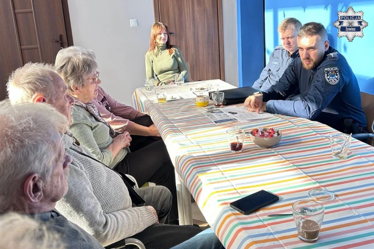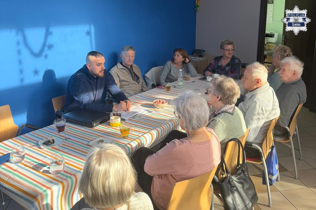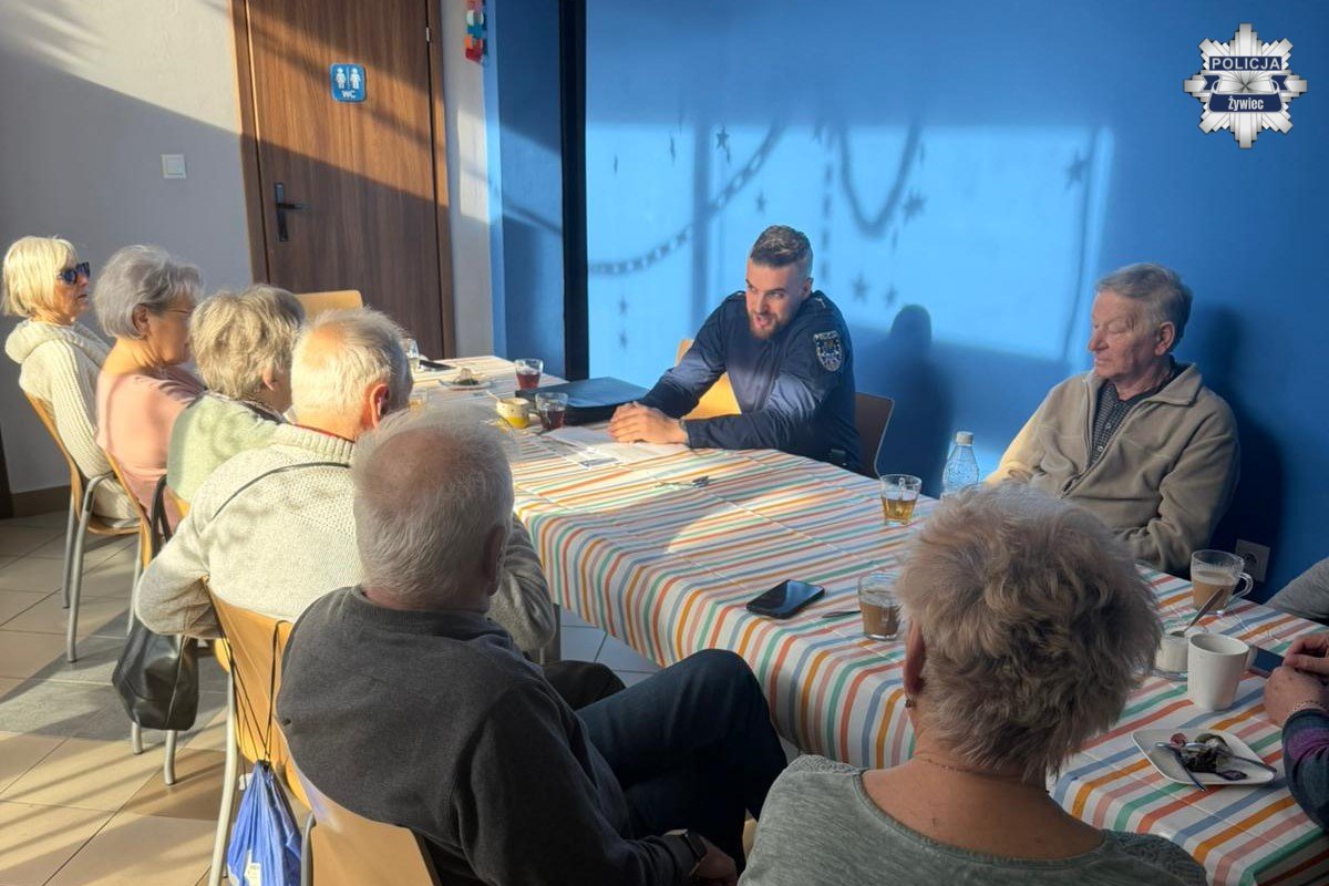 Dzielnicowi z Komendy Powiatowej Policji w Żywcu spotkali się z seniorami w Klubie MCK „Akwarium” w Żywcu. Spotkanie miało charakter profilaktyczny i było poświęcone szeroko rozumianemu bezpieczeństwu osób starszych, ze szczególnym uwzględnieniem zagrożeń związanych z działalnością oszustów.