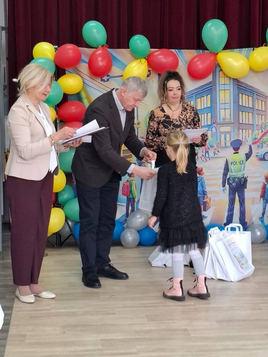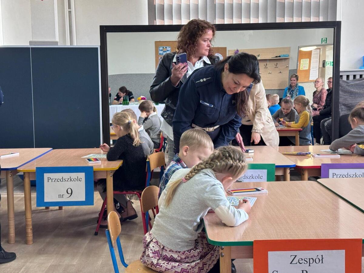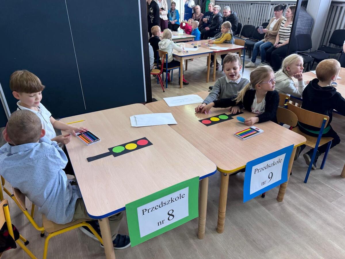 Podczas konkursu nie zabrakło również elementów zabawy i zdrowej rywalizacji. Przedszkolaki z dużym zaangażowaniem odpowiadały na pytania, rozwiązywały zadania oraz brały udział w przygotowanych konkurencjach. Wydarzenie było doskonałą okazją do utrwalania wiedzy o bezpieczeństwie oraz budowania świadomości, jak ważne jest przestrzeganie zasad ruchu drogowego już od najmłodszych lat.