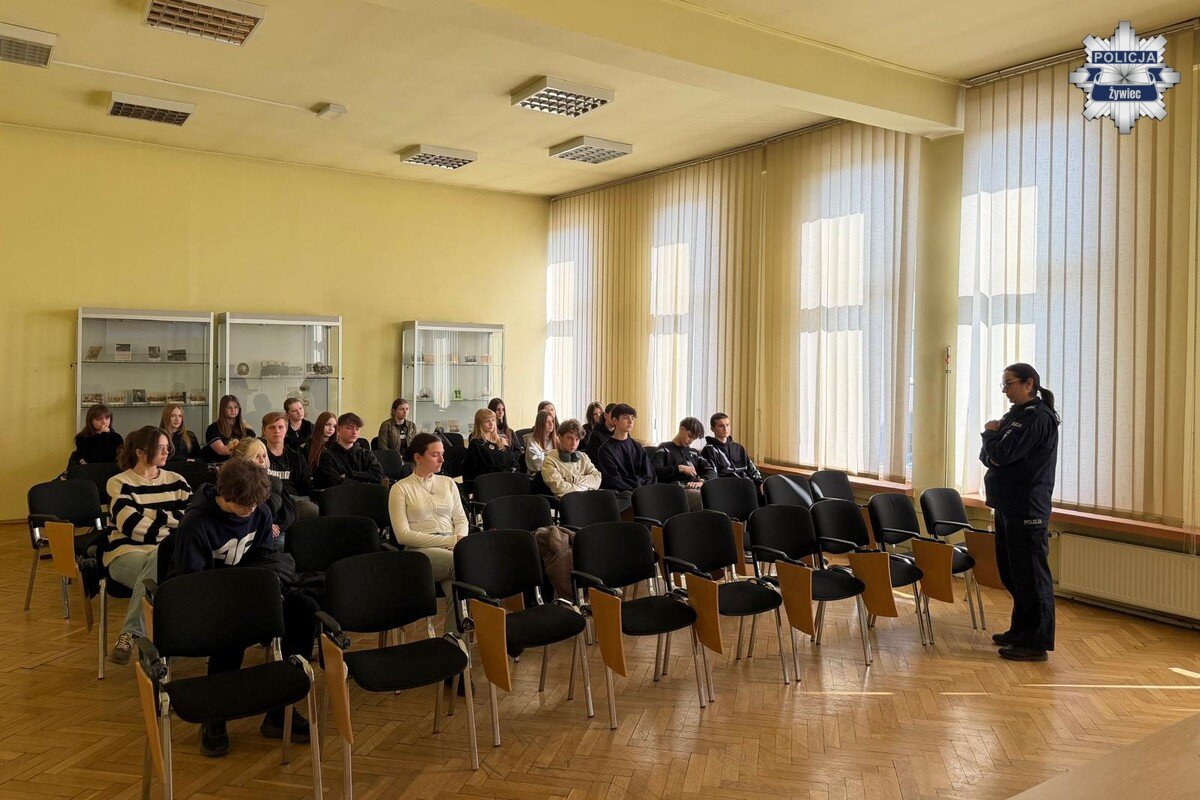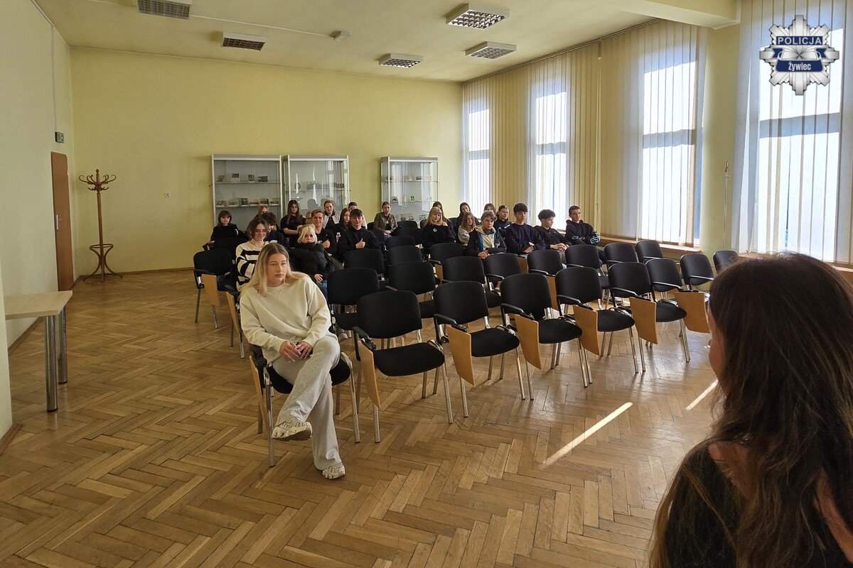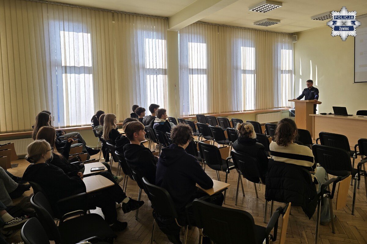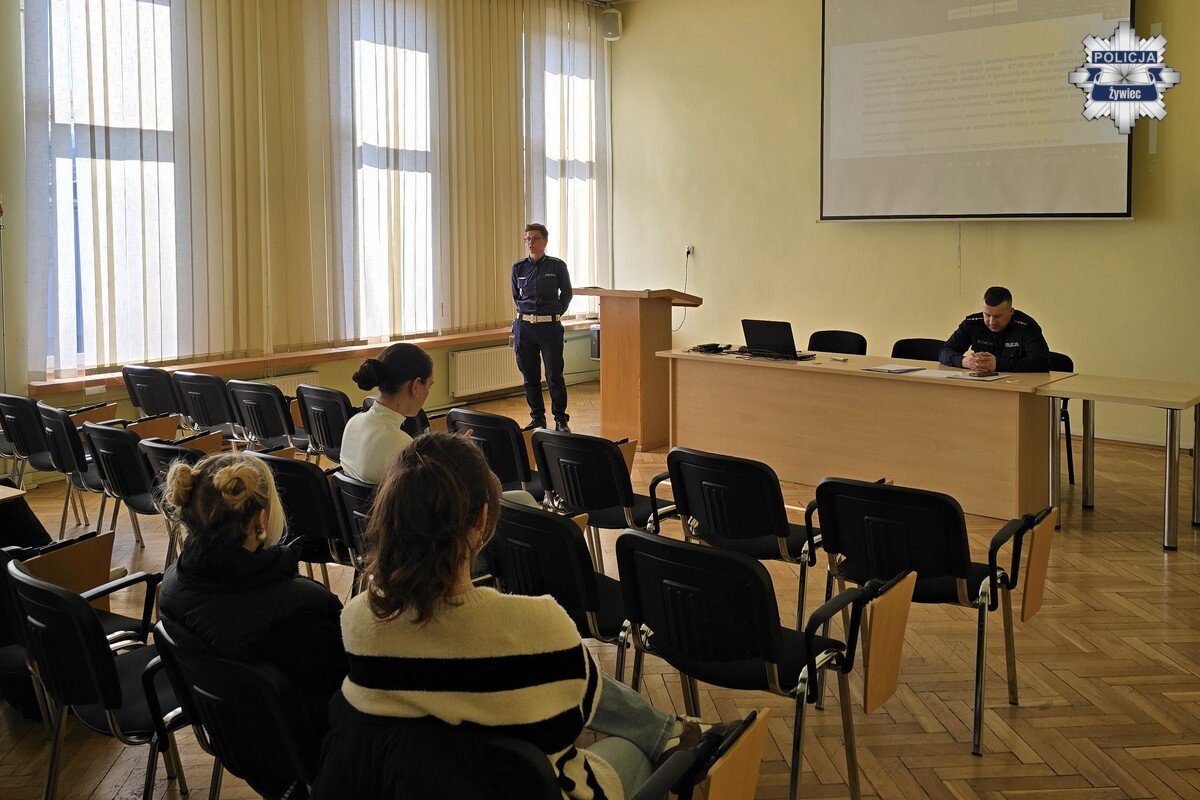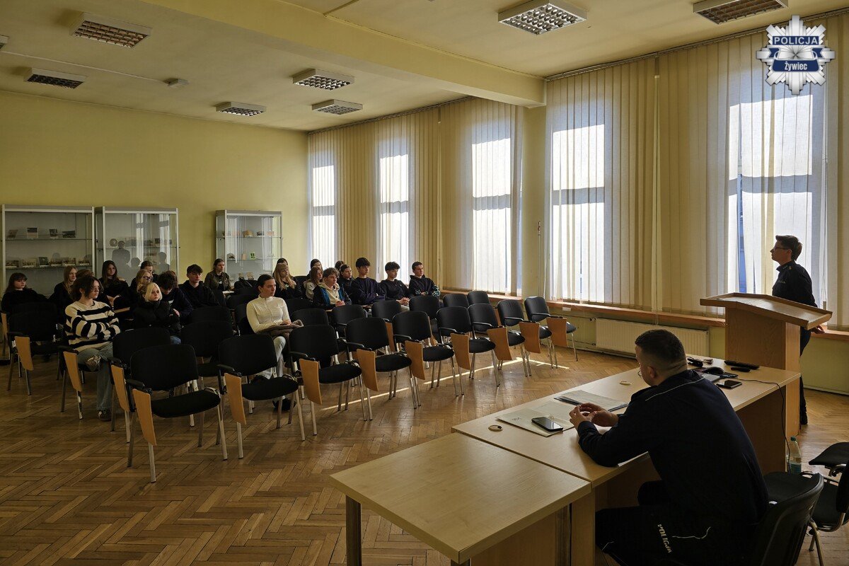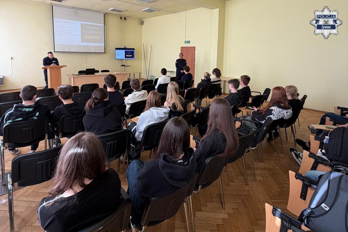 W środę, 18 marca 2026 roku, w Komendzie Powiatowej Policji w Żywcu odbyła się 23. edycja „Dnia przedsiębiorczości”. W wydarzeniu uczestniczyli uczniowie żywieckich szkół ponadpodstawowych, którzy mieli okazję z bliska poznać specyfikę policyjnej służby oraz dowiedzieć się, jak wygląda droga do wstąpienia w szeregi Policji.